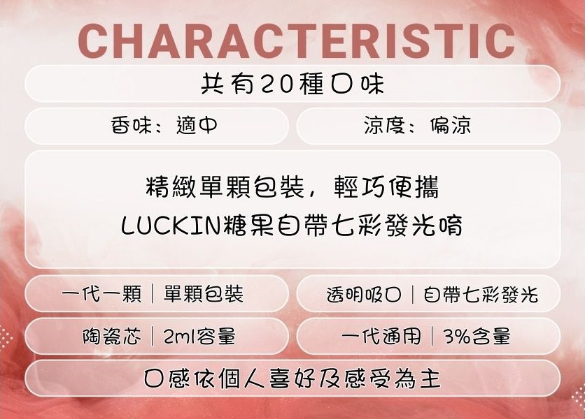 一起進入LUCKIN的七彩發光的世界,體驗口感與涼度的巔峰之作,盡情享受每一次的吸煙樂趣!